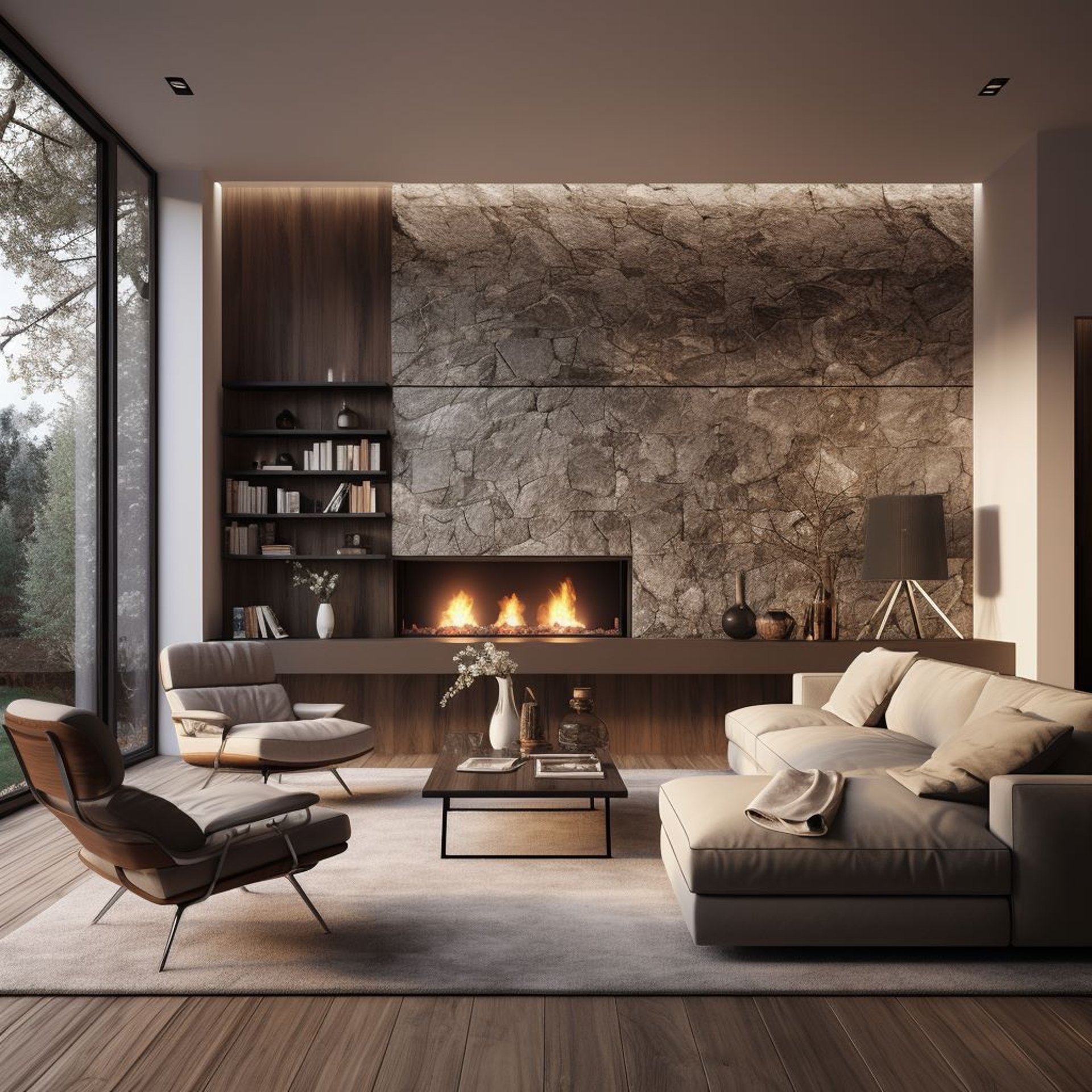 Modernūs baldai tamsiame dizaine